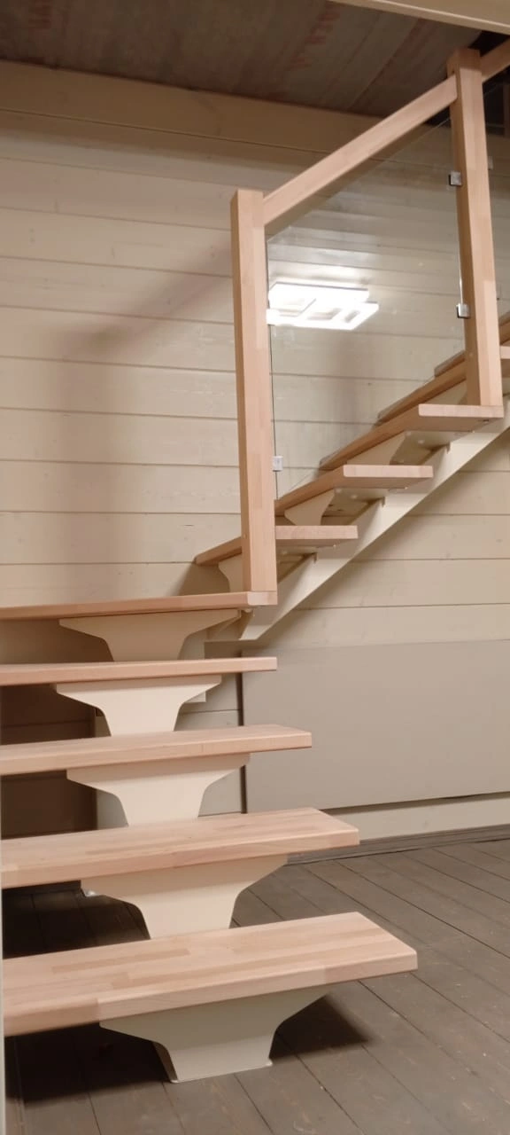 Компактная "воздушная" лестница из бука. Хорошая альтернатива складной чердачной лестнице при частом использовании. Базовый комплект включает в себя деревянные элементы лестницы без какого-либо покрытия.
