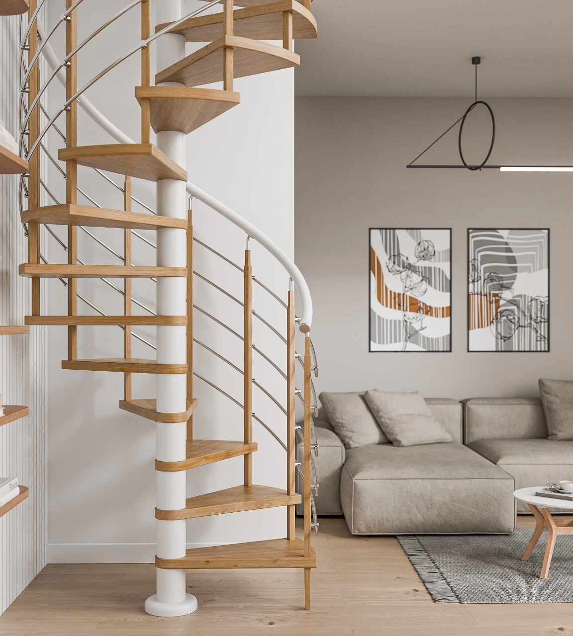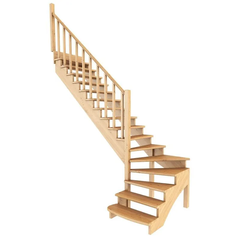 Ступени и поручень лестницы изготовлены из дуба, остальные элементы из сосны. Возможно изготовление модели полностью из дуба. Базовый комплект включает в себя деревянные элементы лестницы и ограждения без какого-либо покрытия. Вы можете заказать у нас профессиональную покраску лестницы в цвета, отвечающие особенностям вашего помещения.