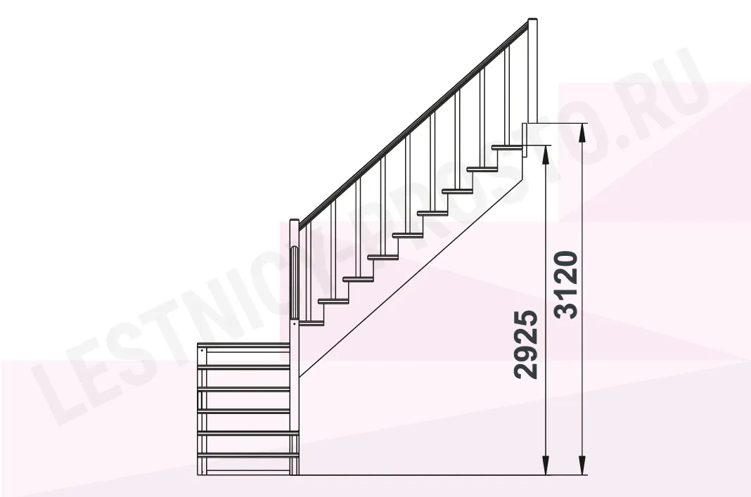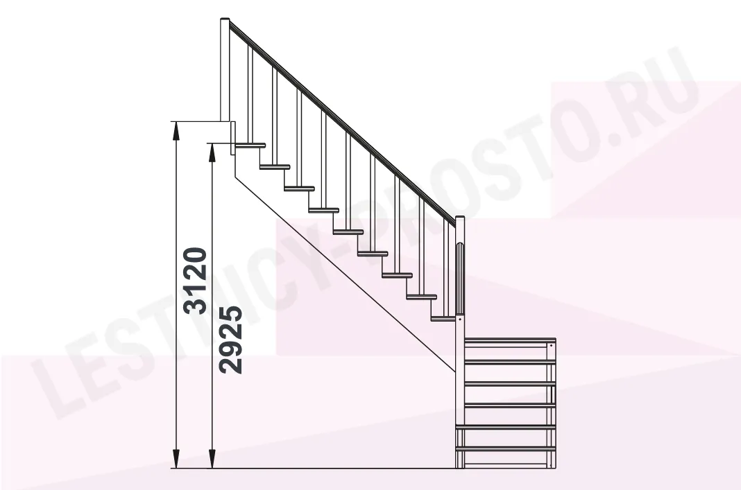 Схема лестницы К-002М/3 с поворотом налево