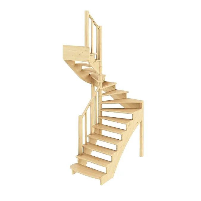 Базовый комплект включает в себя деревянные элементы лестницы и ограждения ;без какого-либо покрытия.