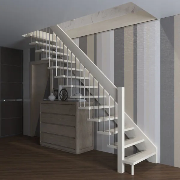 Базовый комплект включает в себя деревянные элементы лестницы и ограждения без какого-либо покрытия.