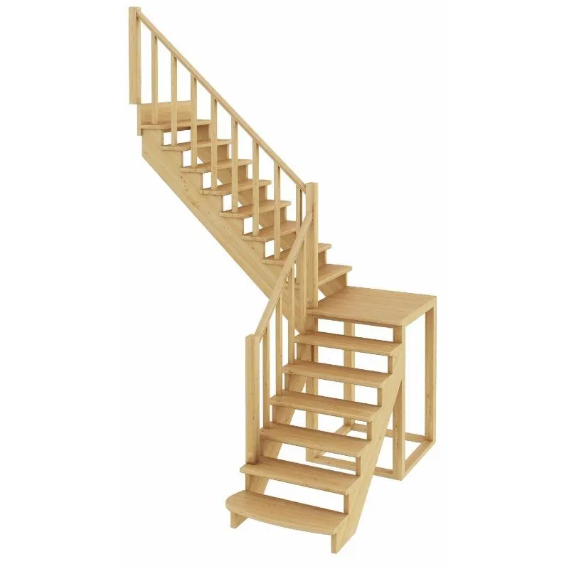 Ступени и поручень лестницы изготовлены из ясень, остальные элементы из сосны.