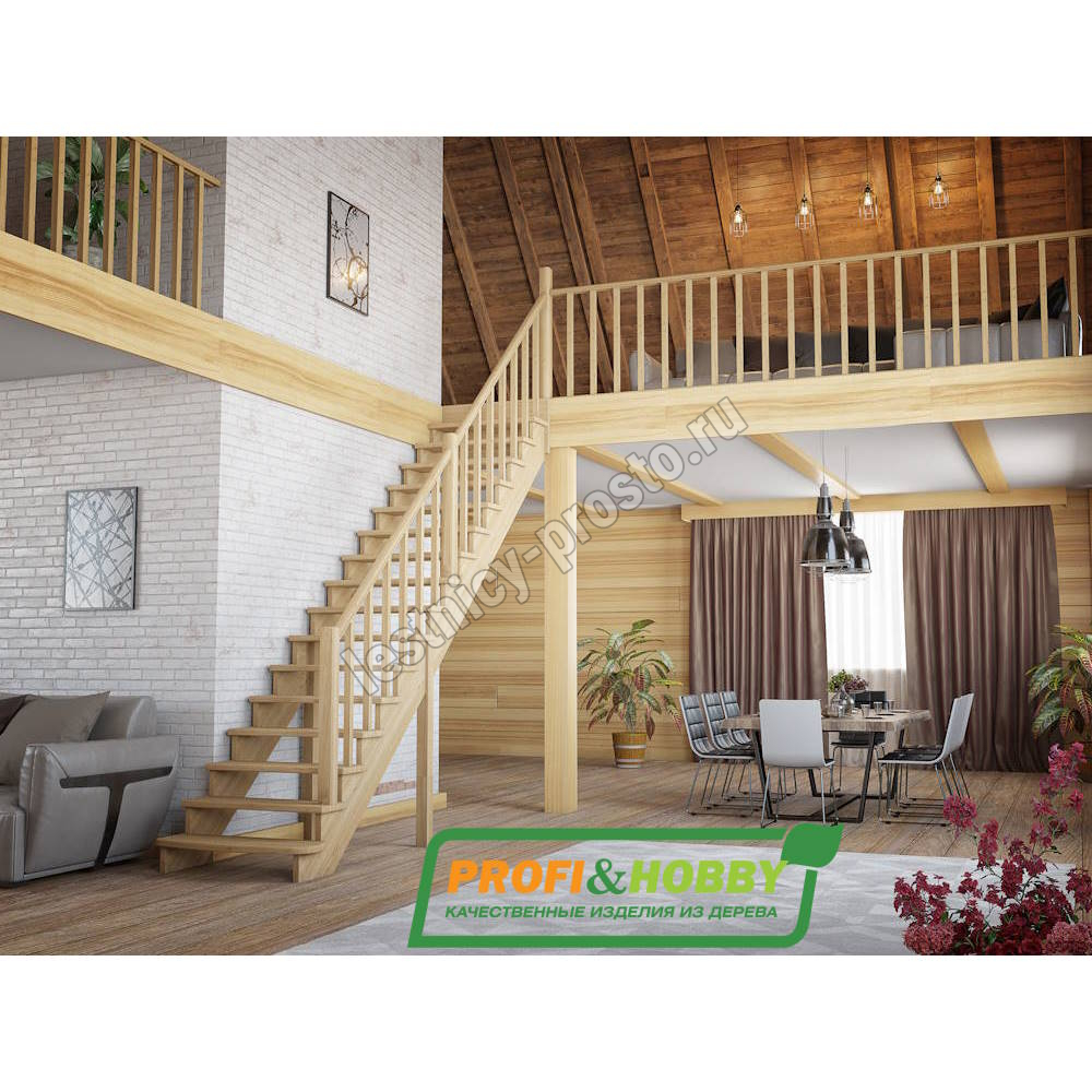 Базовый комплект включает в себя деревянные элементы лестницы и ограждения без какого-либо покрытия.