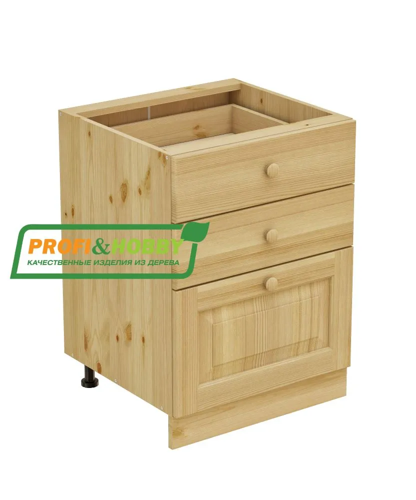 Тумба 3 ящика 600 х 560 х 720 сосна, бесцветный акриловый лак