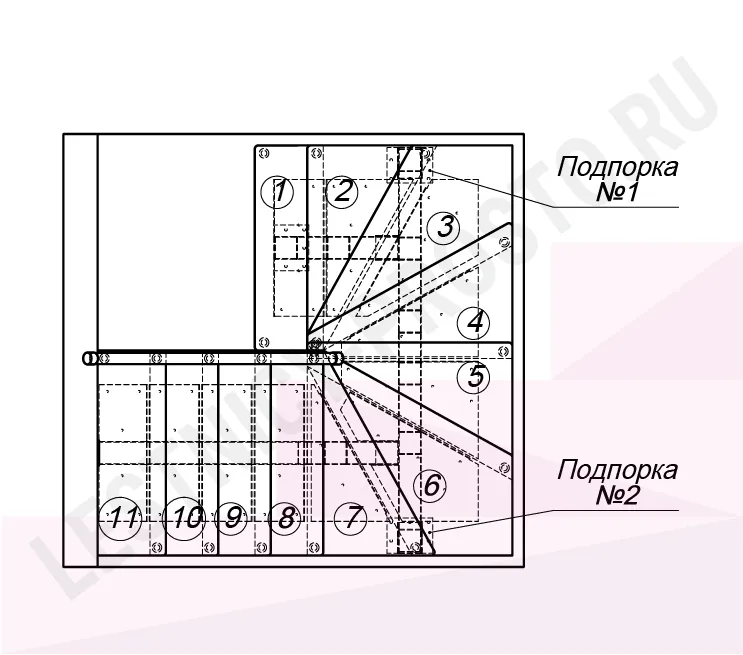 Высота лестницы 2475 - 2700 (11 ступеней) мм