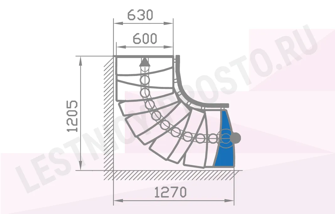 При монтаже этой лестницы, возможно регулировать высоту и глубину шага, таким образом можно получить лестницу под высоты этажа в диапазоне 2220 - 3000 мм.