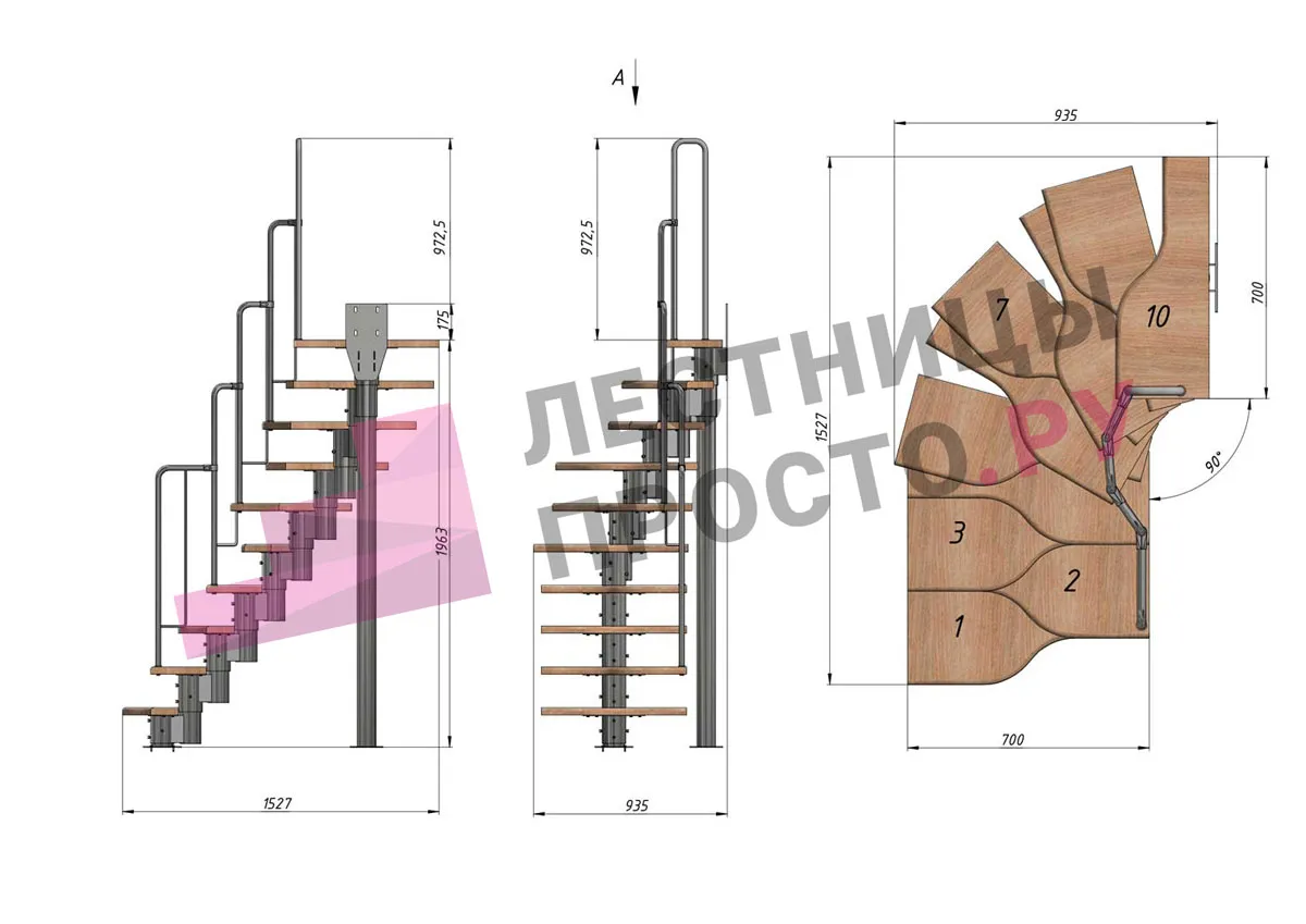 Высота лестницы 1980 - 3600 мм