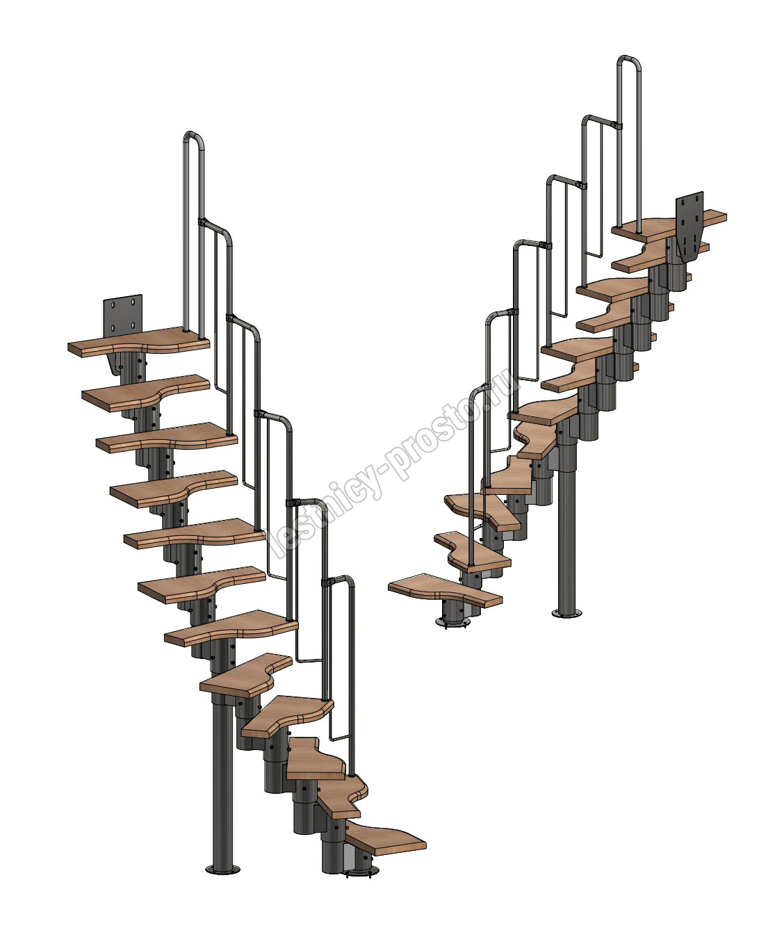 Лестница Prosto Urban Black гусиный шаг 600 мм, h216-312 см (12 ступеней), дуб