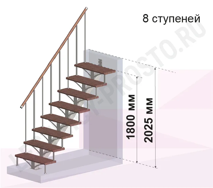 Лестница PROSTO MONO прямая, h202.5 см, ступени хвоя