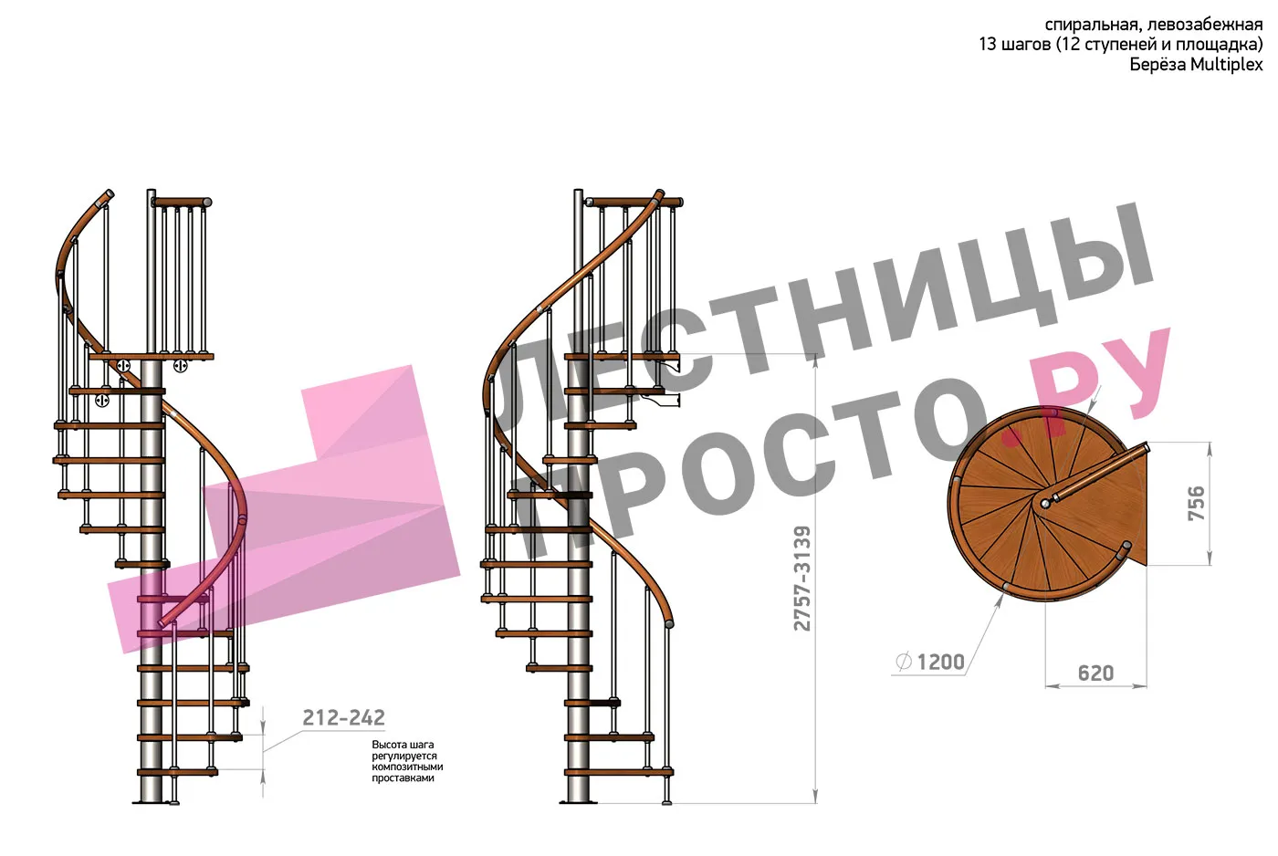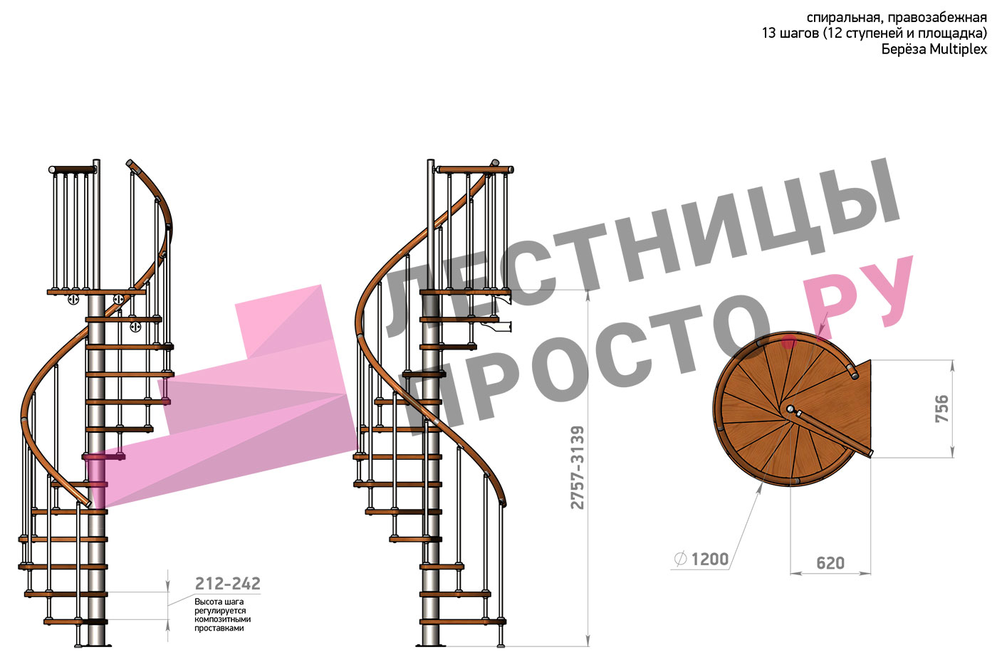 Высота лестницы 2757 - 3139 (12 ступеней) мм