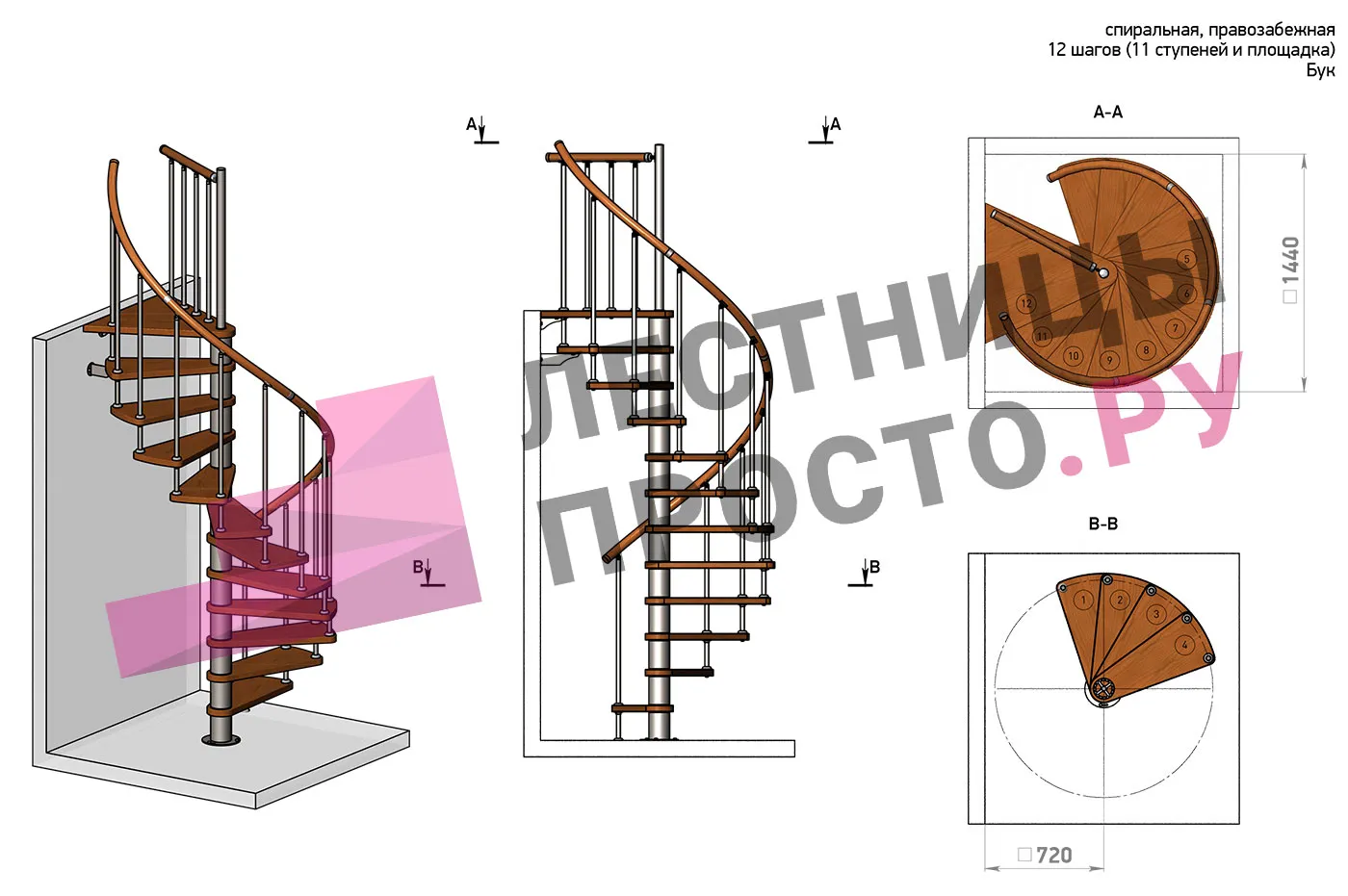 Решение о направлении поворота принимается при сборке лестницы - универсальная конструкция позволяет собрать правозабежную и левозабежную лестницы.