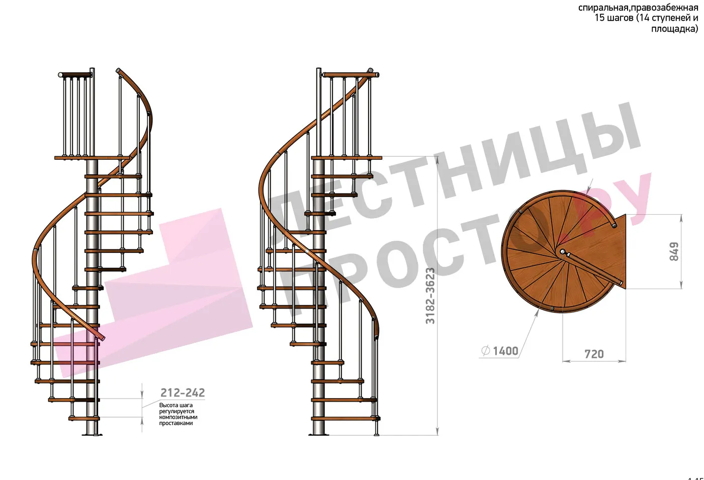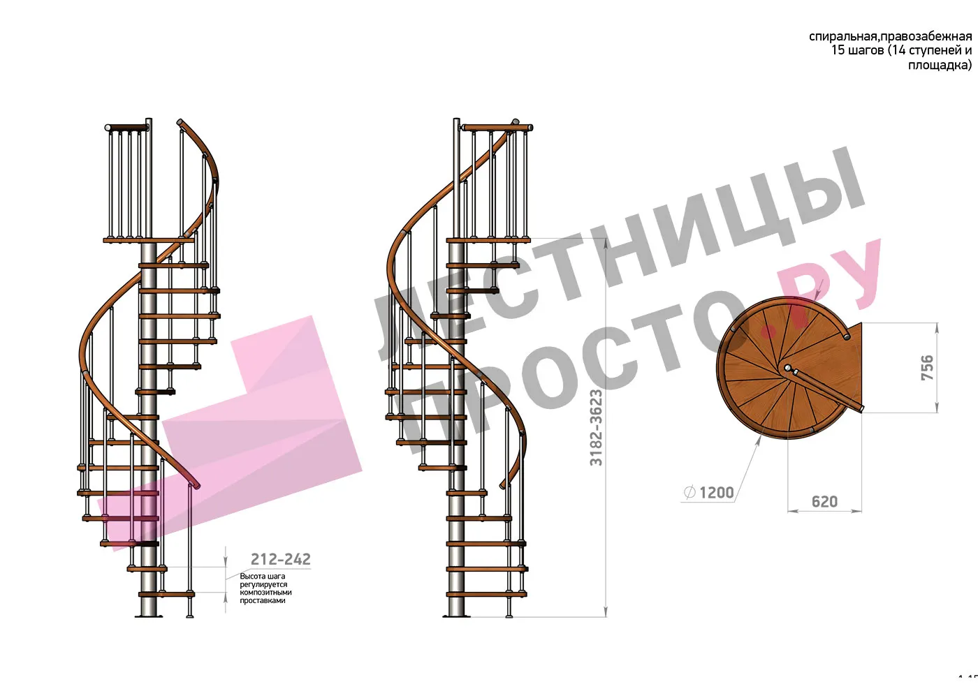 | Винтовая лестница Prosto Spiral White D140см, h254.5-289.8 см |