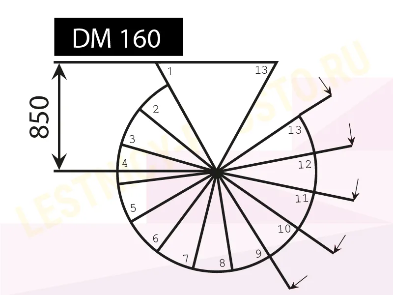 Параметры лестницы SPIRAL DECOR 160 с разным количеством ступеней