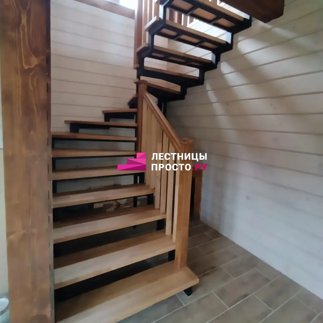 Лестница LP из сосны на второй этаж с поворотом на 180 градусов