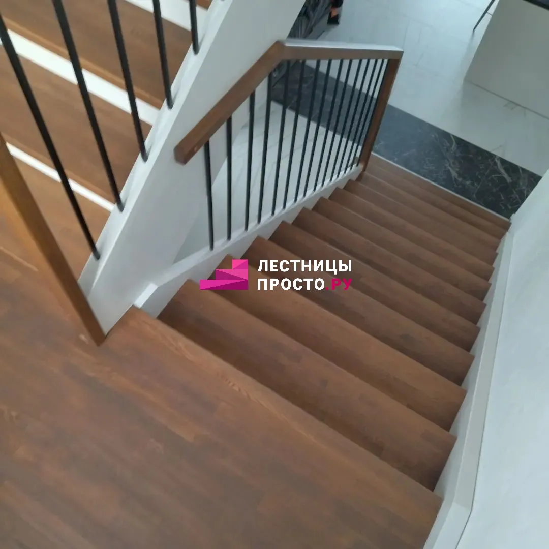 Подступенники, фальш-косоуры и сапожки (пристенной плинтус) выполнены из МДФ.